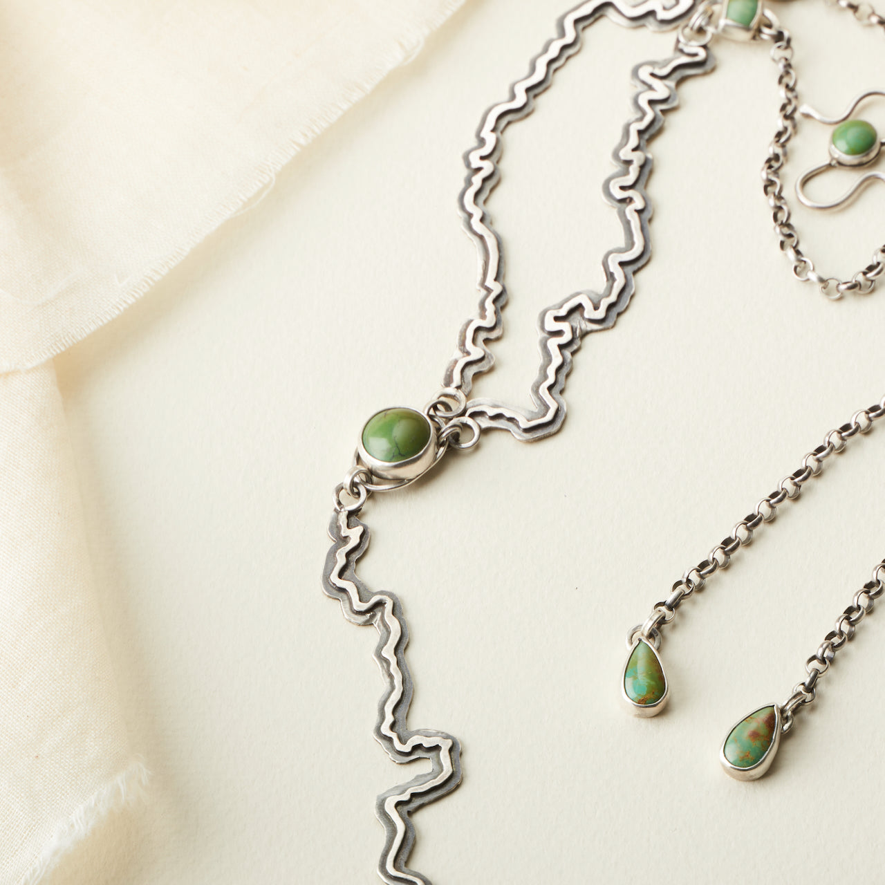 Blackfoot Lariat with Green Turquoise from Tyrone Mine, New Mexico