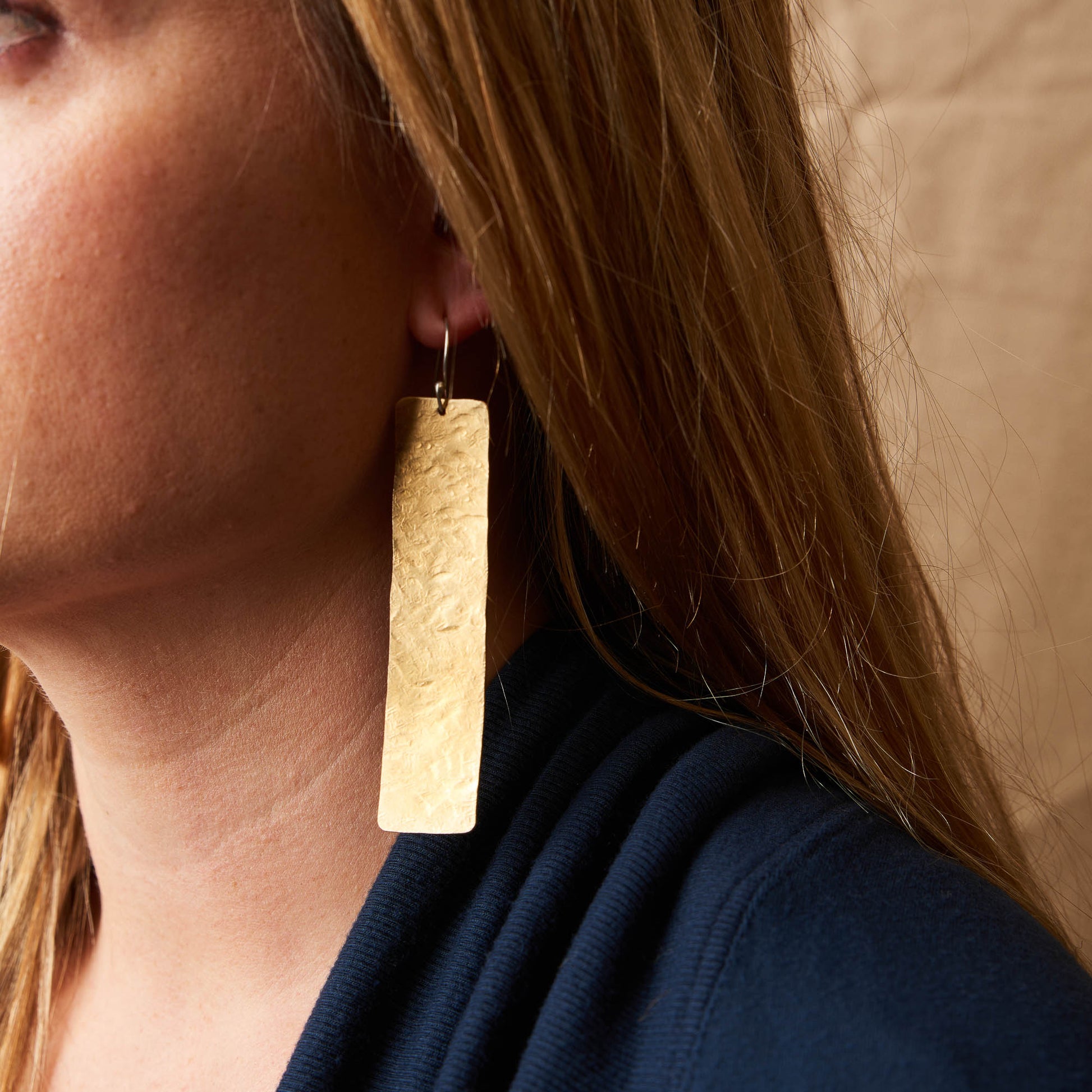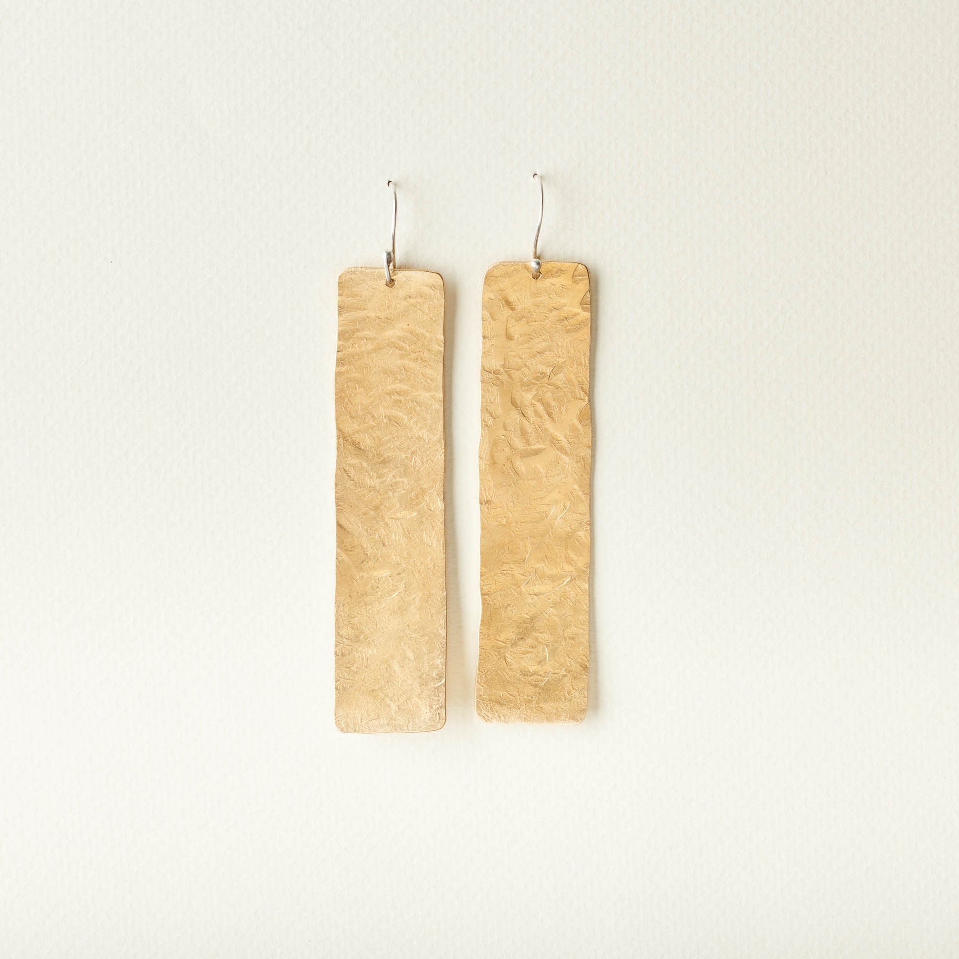 These lightweight brass earrings measure about 3.5" long.