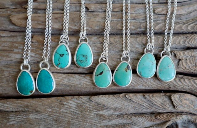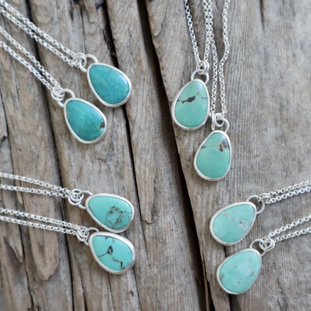 These are Bestie Necklaces- matching Royston (NV) turquoise, set in fine silver, that come in a pair- one for you and one for your BFF/mama/sister/roomie/crush/GF/ your #1!!