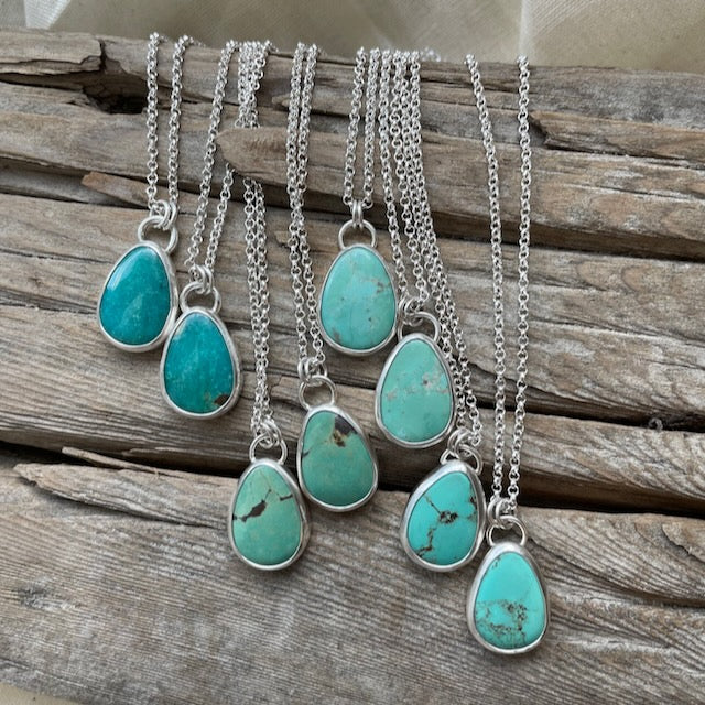 These are Bestie Necklaces- matching Royston (NV) turquoise, set in fine silver, that come in a pair- one for you and one for your BFF/mama/sister/roomie/crush/GF/ your #1!!